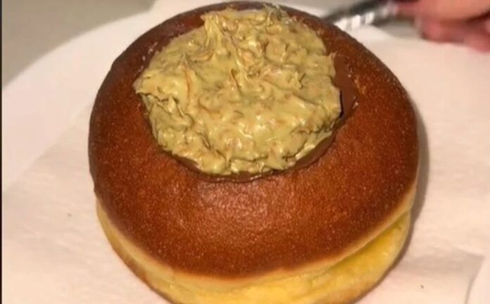 Na malo putera prepržite kadaif pa ga pomiješajte s domaćom kremom od pistacije. Ohlađene krofne punite nadjevom pomoću kašike, piše Zadovoljna.hr.