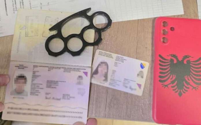 Tom prilikom kod M.S. pronađen je metalni bokser i PVC maska za telefon sa simbolima zastave Albanije.