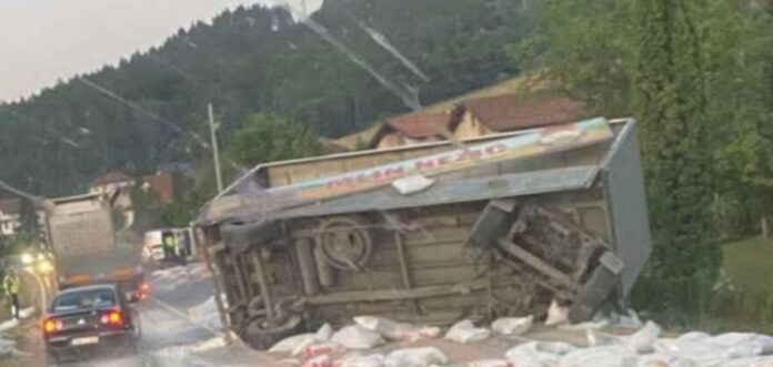 Prema prvim informacijama, kamion se iz zasad neutvrđenih razloga prevrnuo u krivini, a stotine kilograma brašna iz vozila završile su po kolovozu, otežavajući dodatno uslove vožnje.