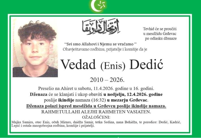Vijest o preranoj smrti mladog Vedada duboko je potresla porodicu, prijatelje i cijelu lokalnu zajednicu. Društvene mreže ispunjene su porukama oproštaja i tuge za izgubljenim mladim životom.